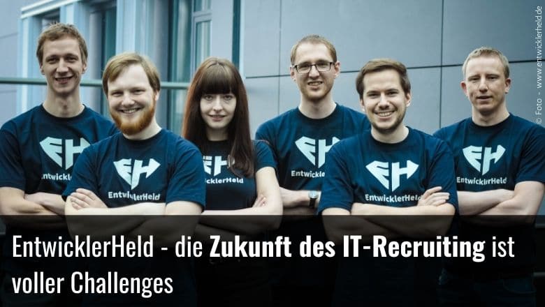 Junge Programmierer können über EntwicklerHeld Herausforderungen lösen und sich damit für künftige Arbeitgeber empfehlen. Ziel der Plattform ist es, dem Recruiting im IT-Bereich ein Update zu verpassen und Bewerbungsprozesse in Zeiten des Fachkräftemangels spielerisch und fair zu gestalten. Mehr von Felix Hanspach (3.v.r) – Geschäftsführer & Co-Founder.