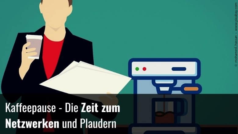 Die Kaffeepause wird, der Bezeichnung entsprechend, am besten am Kaffeeautomaten verbracht. Dort trifft man ganz ungezwungen auf die Kollegen der unterschiedlichsten Abteilungen und kommt, Kaffee sei Dank, einfach ins Gespräch. So lässt es sich ganz ungezwungen netzwerken und die verschiedensten Beziehungen aufbauen, die sich oftmals als sehr nützlich erweisen.